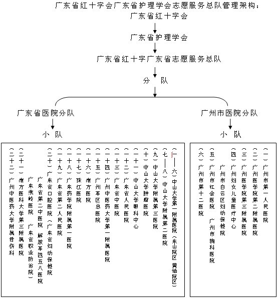 弘杨“人道、博爱、奉献”的红十字精神,广东省护理学会筹划半年之久的义工组织,命名为:广东省红十字广东省护理学会志愿服务总队。共29间医院1184名医务人员志愿加入。拥有28个小分队。