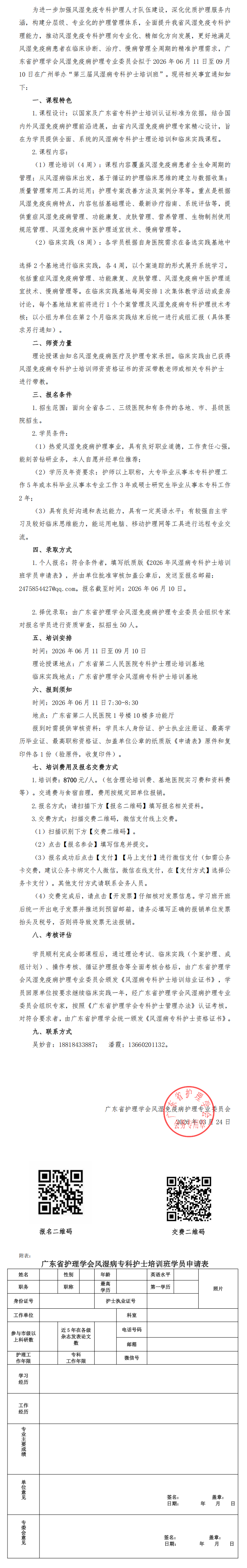 关于举办第三届风湿病专科护士培训班的通知(第一轮)