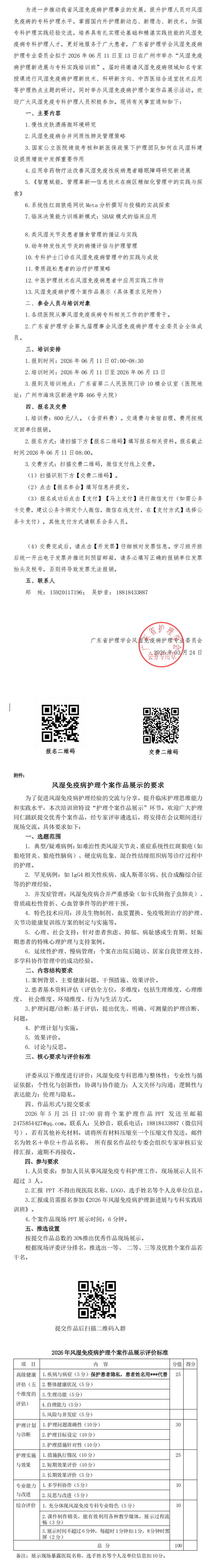关于举办风湿免疫病护理新进展与专科实践培训班的通知(第一轮)
